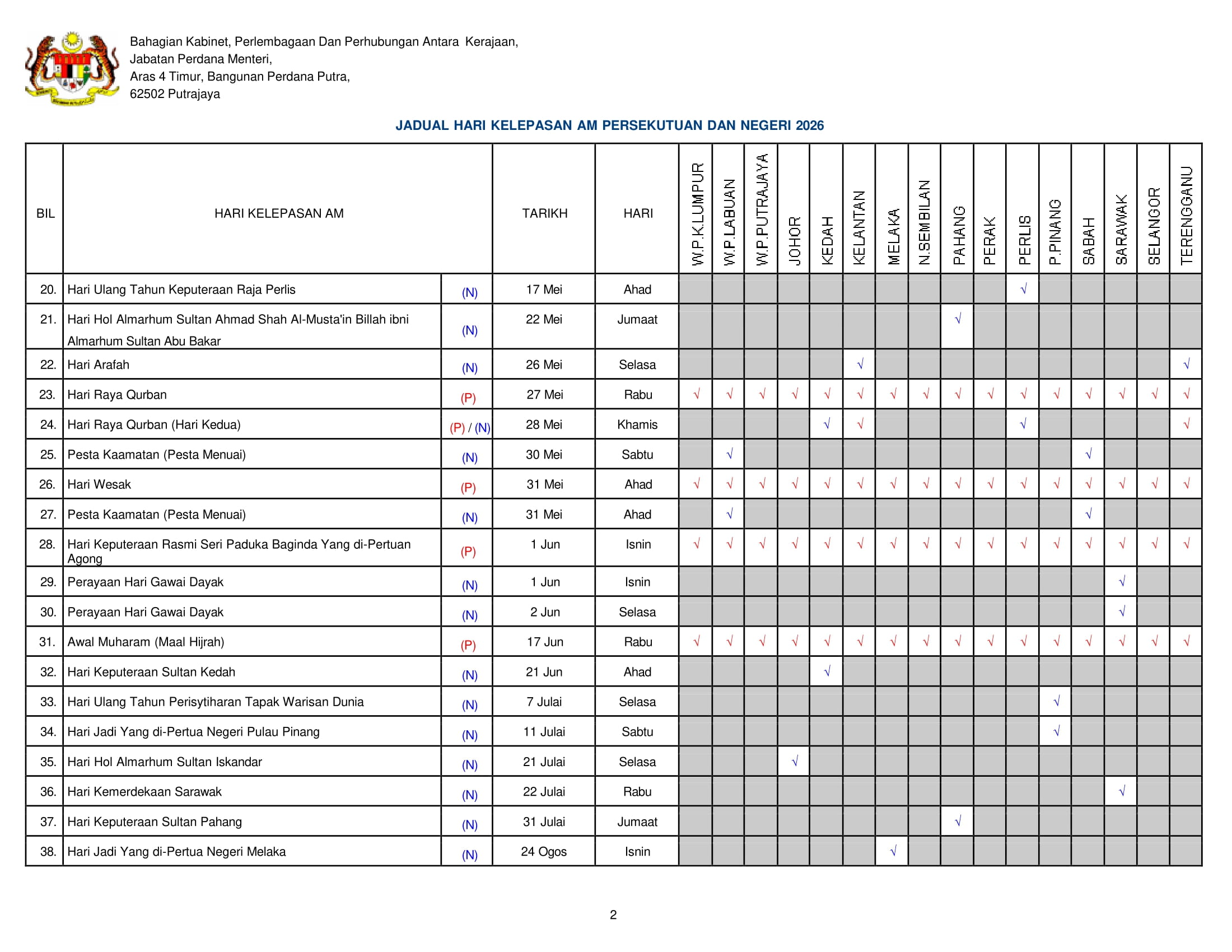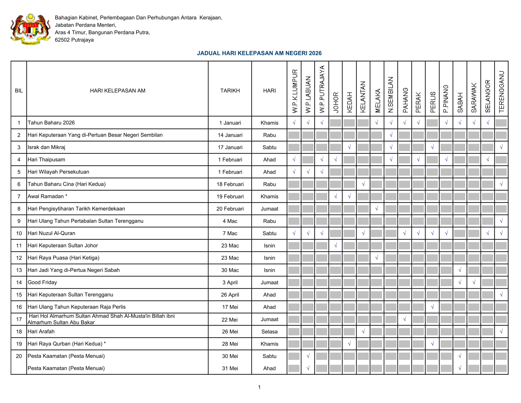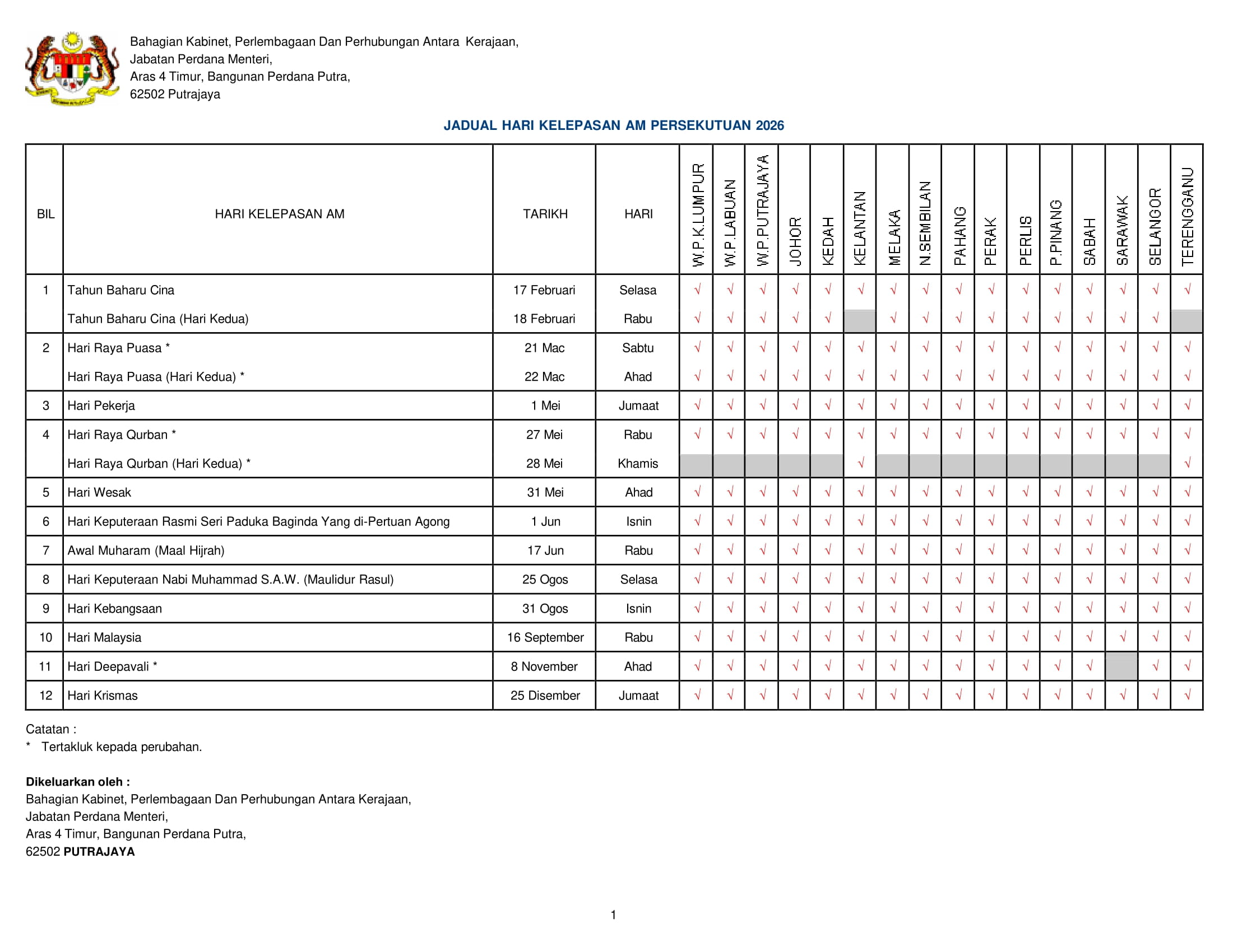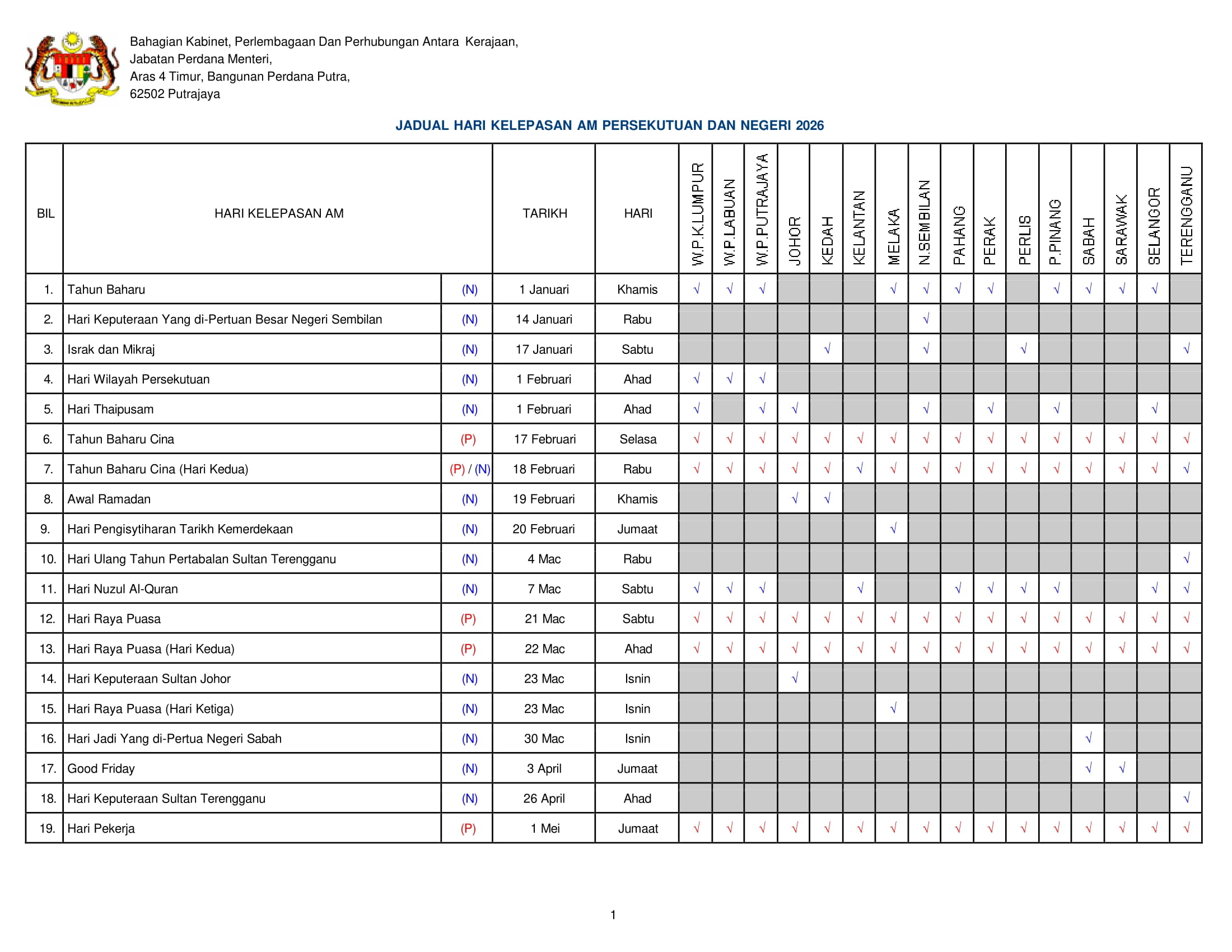 Hari Kelepasan Am Malaysia 2026 Takwim Persekolahan Tahun 2026 Sumber daripada Kementerian Pendidikan Malaysia